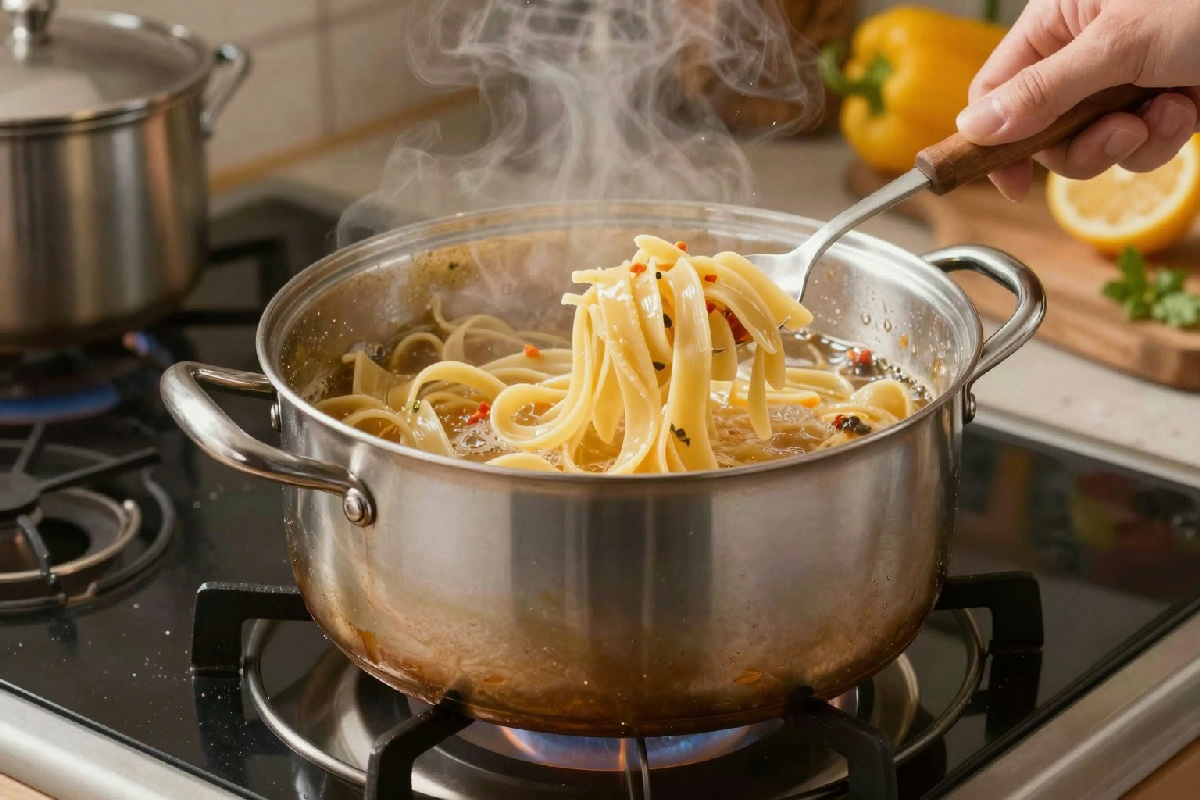 | Cottura a fuoco spento | Cuocere la pasta nel calore residuo dopo ebollizione. | Risparmio energetico e miglior sapore della pasta. |